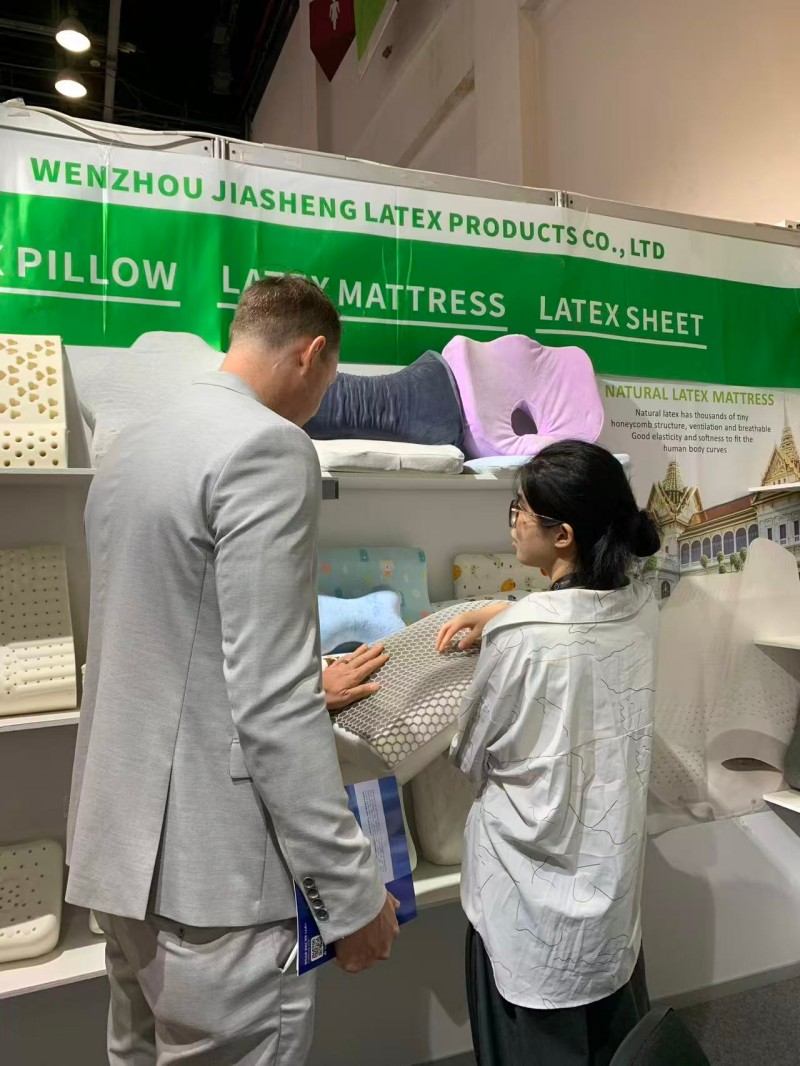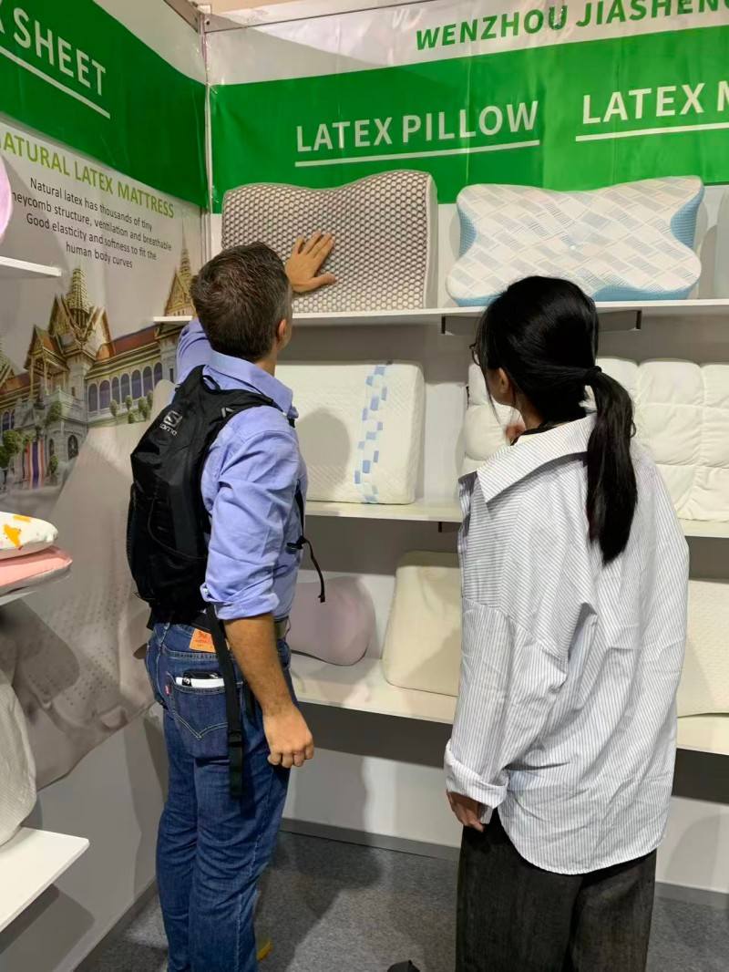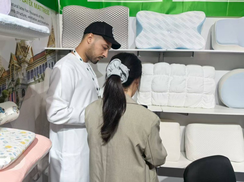 今回のドバイ睡眠展示会で、当社の睡眠に特化した枕を世界中からの来場者にお披露目できることを光栄に思います。私たちは、市場でベストセラーの 2 つの枕を紹介することに専念しています。天然ラテックス枕そして現代のスマートな素材低反発枕。ラテックスの素早いリバウンドと抗アレルギー特性は、ラテックス愛好家に非常に好まれています。一方、メモリーフォームの究極のフィット感は深い眠りを提供します。現場でのお客様との綿密なコミュニケーションから、枕への追求を感じました。私たちは、さまざまな睡眠習慣に合わせてパーソナライズされた選択肢を提供することが、質の高い睡眠の鍵であると確信しています。